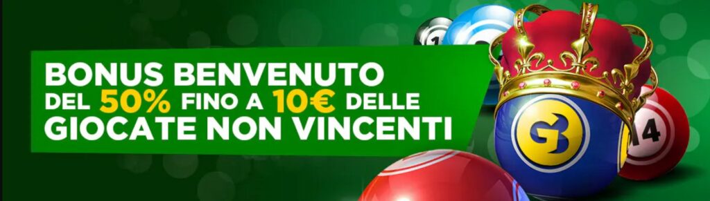 Concludiamo con l’offerta di benvenuto dedicata al Bingo. Questa prevede che tutti gli utenti che si registrano su Goldbet, e che effettuano un deposito di almeno 5 €, possano ricevere un bonus del valore massimo di 10 € pari alla metà del saldo delle giocate non vincenti effettuate nella prima giornata di gioco al Bingo di Goldbet. Anche in questo caso, a titolo esplicativo, possiamo dare uno sguardo alla seguente tabella che prevede alcuni esempi: